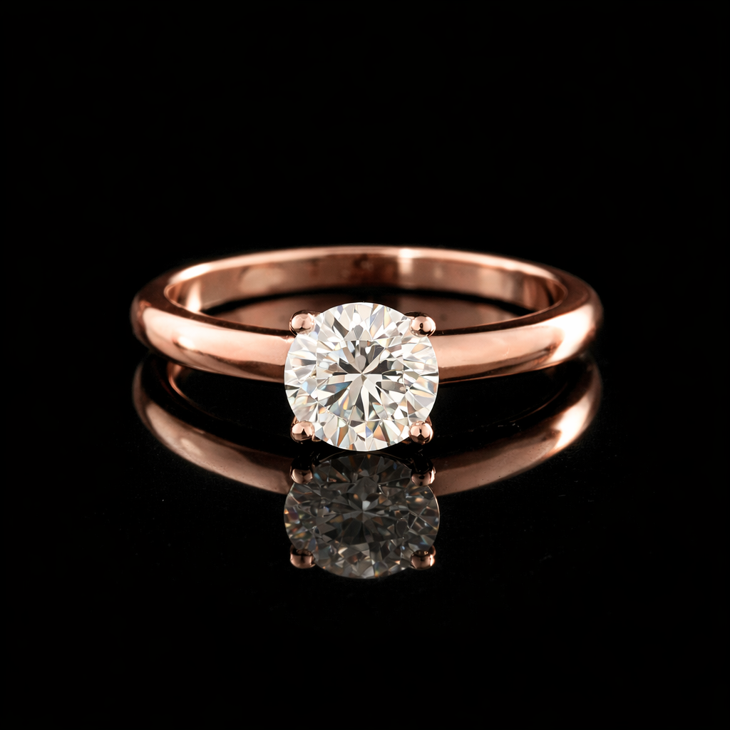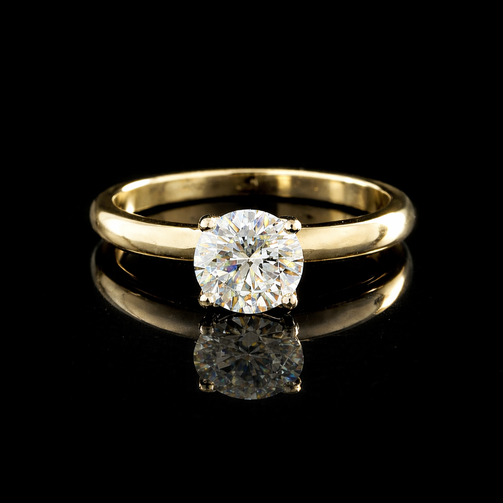 טבעת אירוסין יהלום מעבדה מושלמת עשויה זהב 14 קראט, צבע זהב לפי בחירתך.