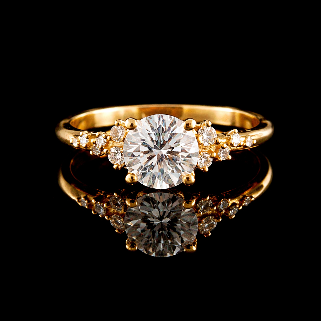 טבעת יהלומי מעבדה מושלמת עשויה זהב 14 קראט, צבע זהב לפי בחירתך.