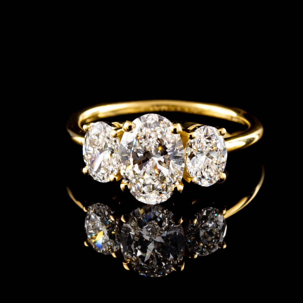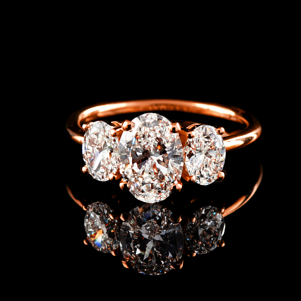 הטבעת משובצת 3 יהלומי מעבדה בגודל 2.10 קראט סה”כ