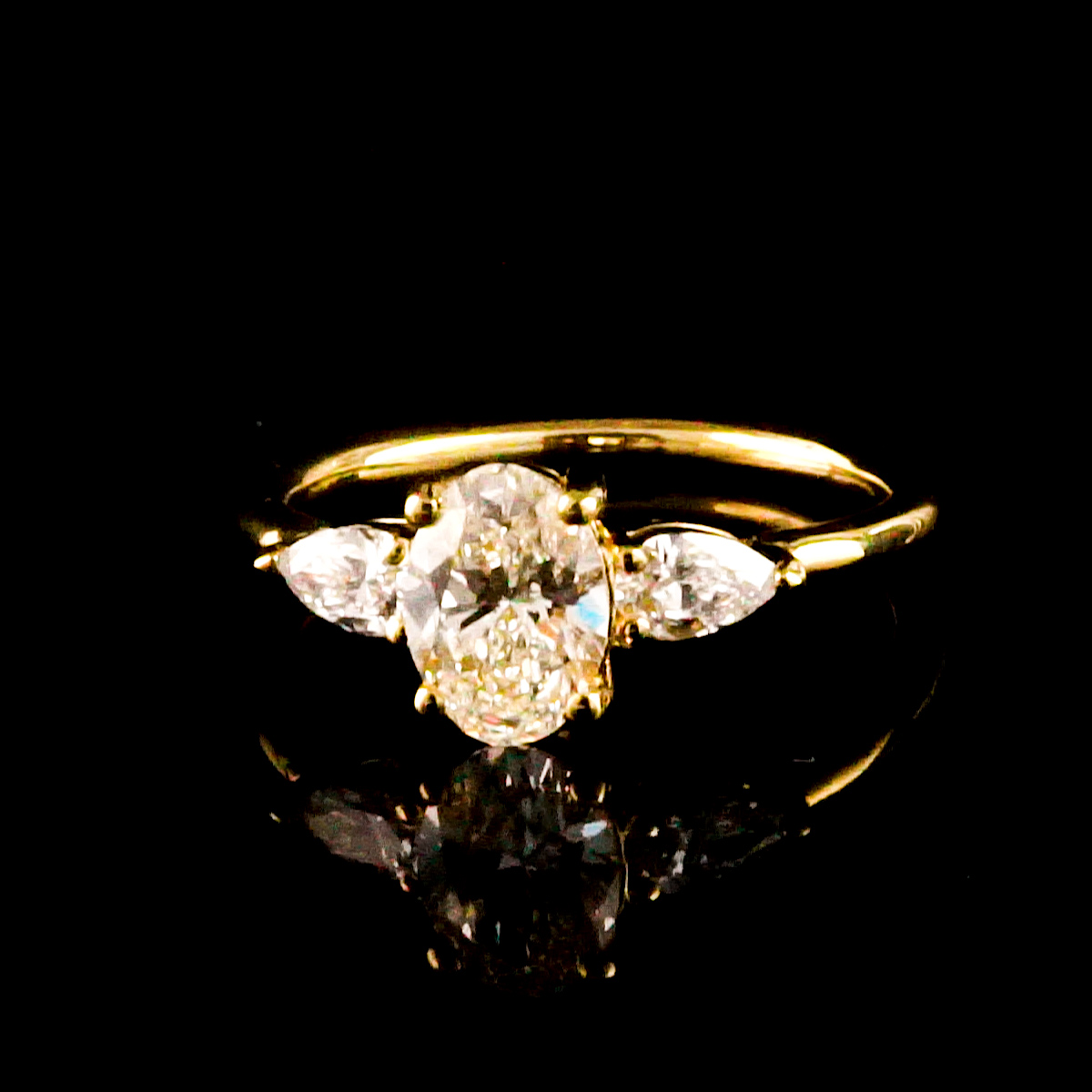 בצדדי האבן המרכזית עוד יהלום מעבדה בכל בצד בחיתוך :טיפה: בכל 0.18 נקודות מכל צד.