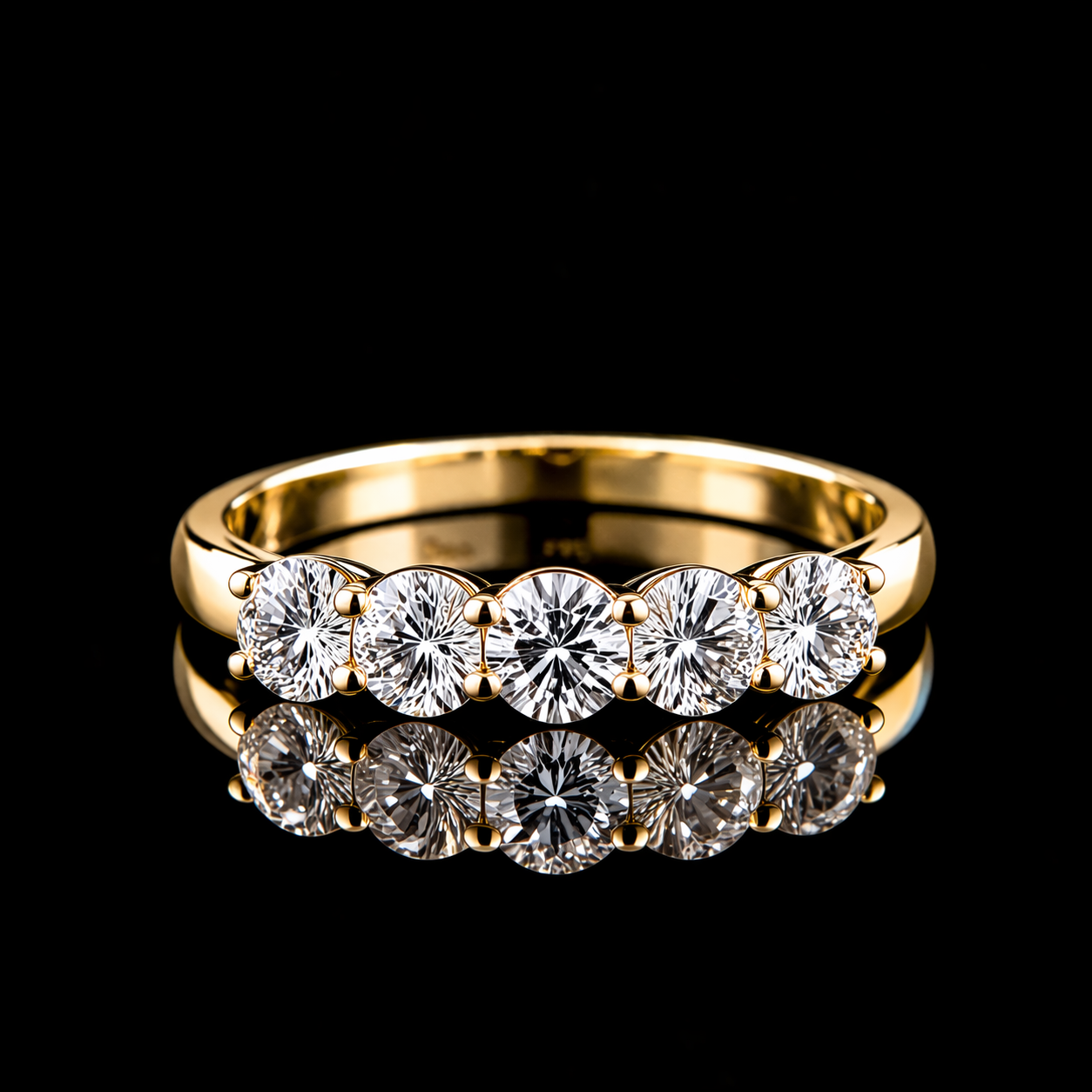טבעת פס יהלומים מעבדה מושלמת עשויה זהב 14 קראט, צבע זהב לפי בחירתך.