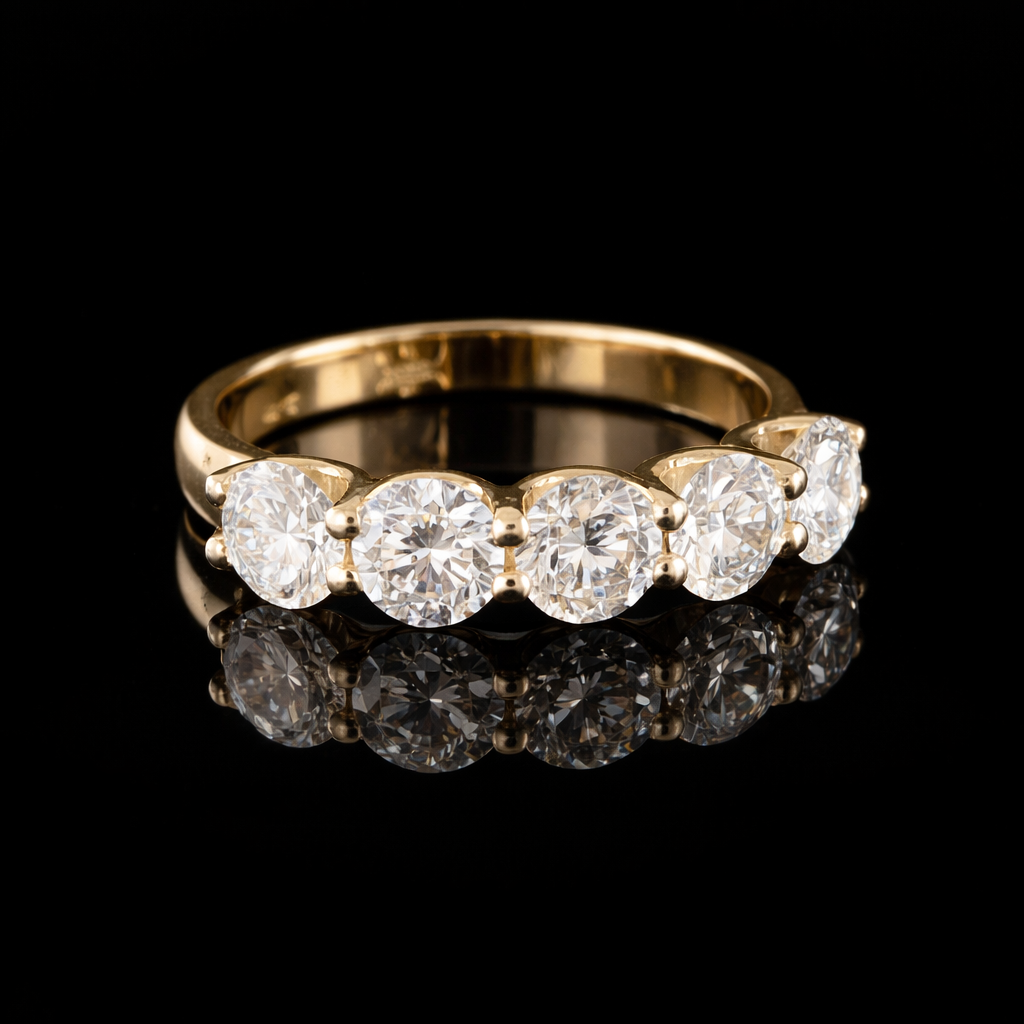 טבעת יהלומי מעבדה מושלמת עשויה זהב 14 קראט, צבע זהב לפי בחירתך.