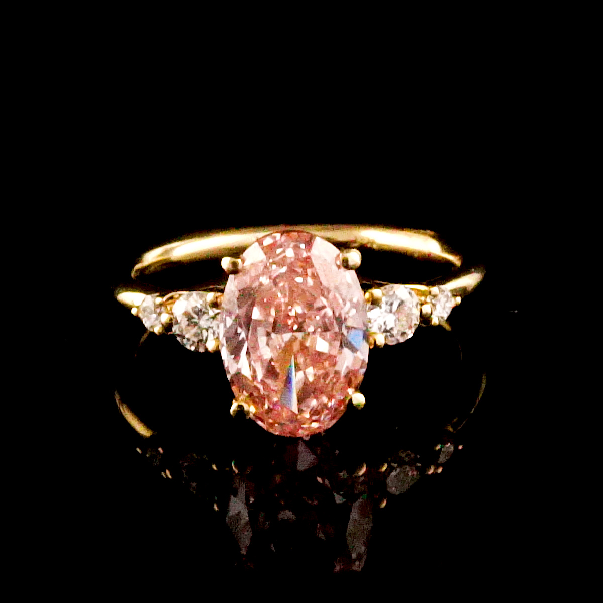 הטבעת משובצת במרכזה יהלום מעבדה ורוד בגדול 2.00 קראט בחיתוך “אובל”