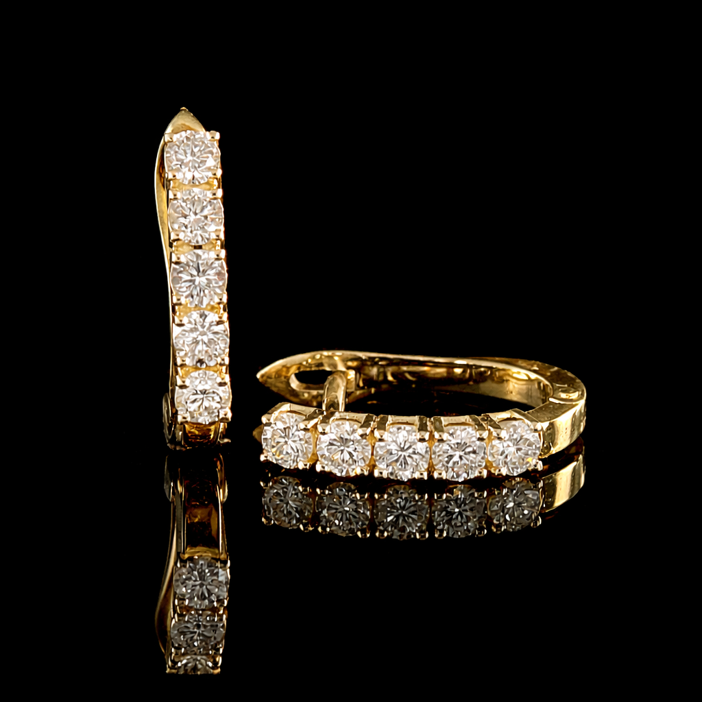 העגילים משובצים ביהלומי מעבדה ברמה הגובהה ביותר ובאיכות הטובה ביותר, גודל היהלומים בעגילים 1.03 נקודות בכל אוזן 0.61 קראט יהלומי מעבדה.