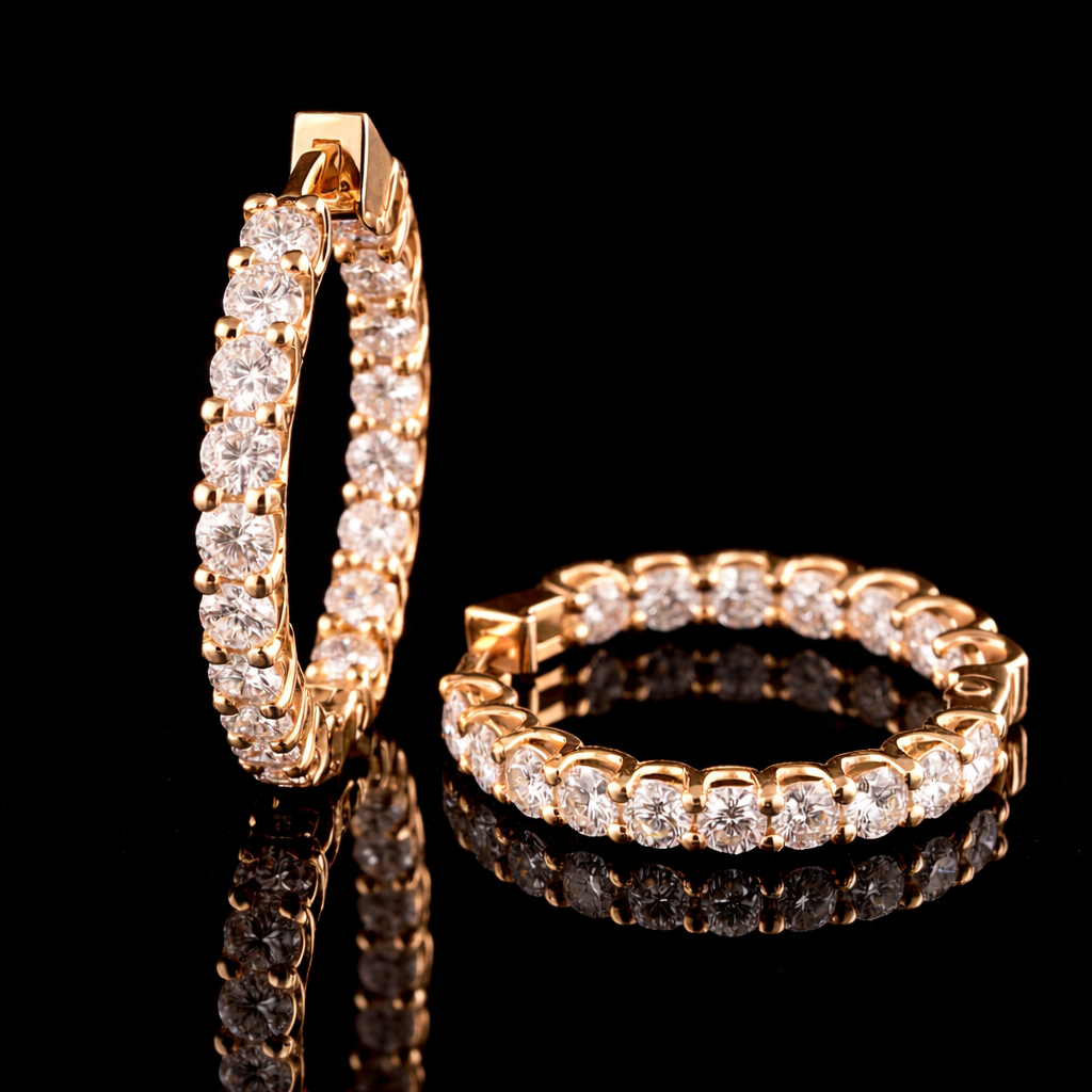 העגילים משובצים ביהלומי מעבדה ברמה הגובהה ביותר ובאיכות הטובה ביותר.