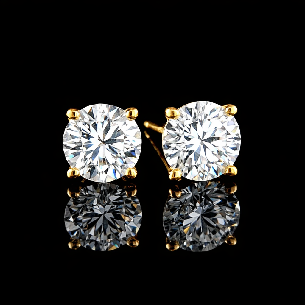 עגילי סולייטר מושלמים משובצים 2.02 קראט יהלומי מעבדה, בית העגיל עשוי זהב 14 קראט, צבע זהב לפי בחירתך.