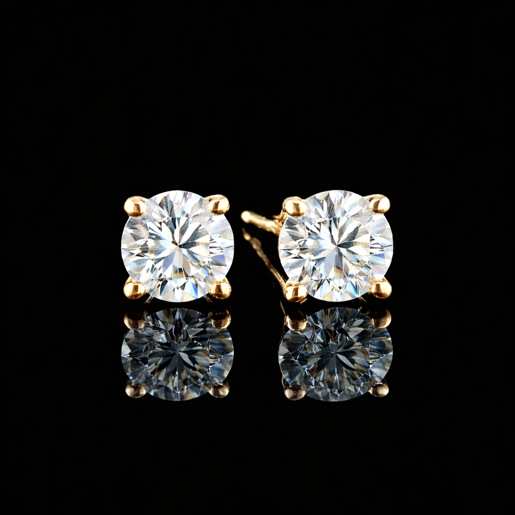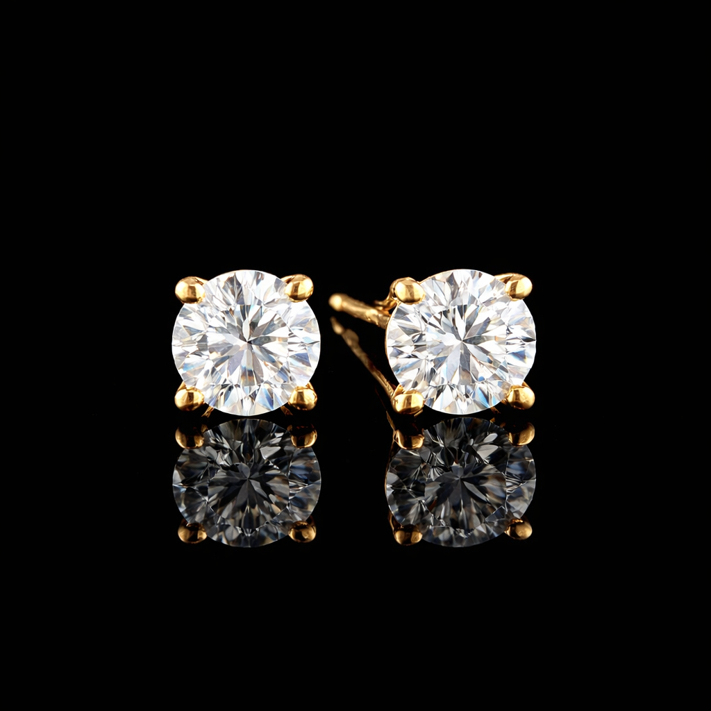 עגילי סוליטר מושלמים משובצים 1.00 קראט יהלומי מעבדה, בית העגיל עשוי זהב 14 קראט, צבע זהב לפי בחירתך.