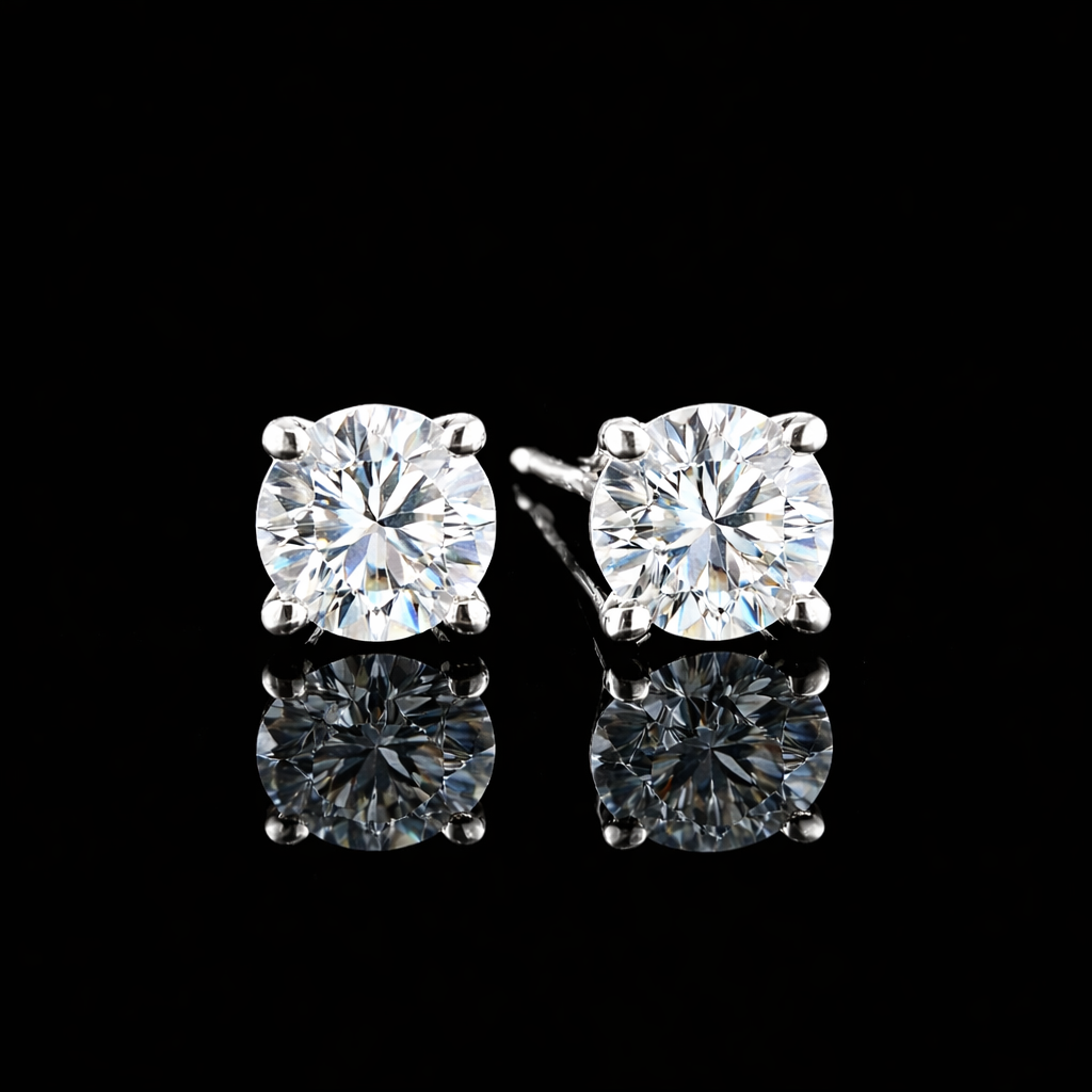 העגילים משובצים ביהלומי מעבדה ברמה הגובהה ביותר ובאיכות הטובה ביותר, גודל היהלומים בעגילים 1.00 קראט בכל אוזן 0.50 קראט יהלום מעבדה.