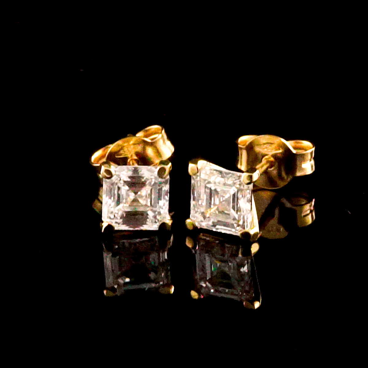 העגילים משובצים ביהלומי מעבדה ברמה הגובהה ביותר ובאיכות הטובה ביותר, גודל היהלומים בעגילים יחד 2.00 קראט בכל אוזן 1.00 קראט יהלום מעבדה.