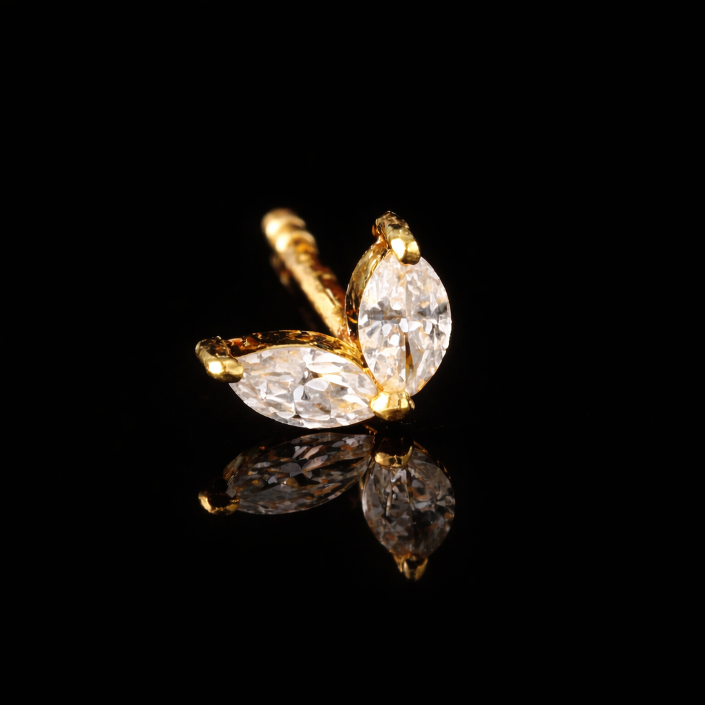 עגיל יהלומי מעבדה צמוד, משקל יהלומים: 0.13 נקודות בצורת מרקיזה, זהב 14 קראט, ניתן לקבל את העגילים בצבע זהב, זהב לבן, אדום.