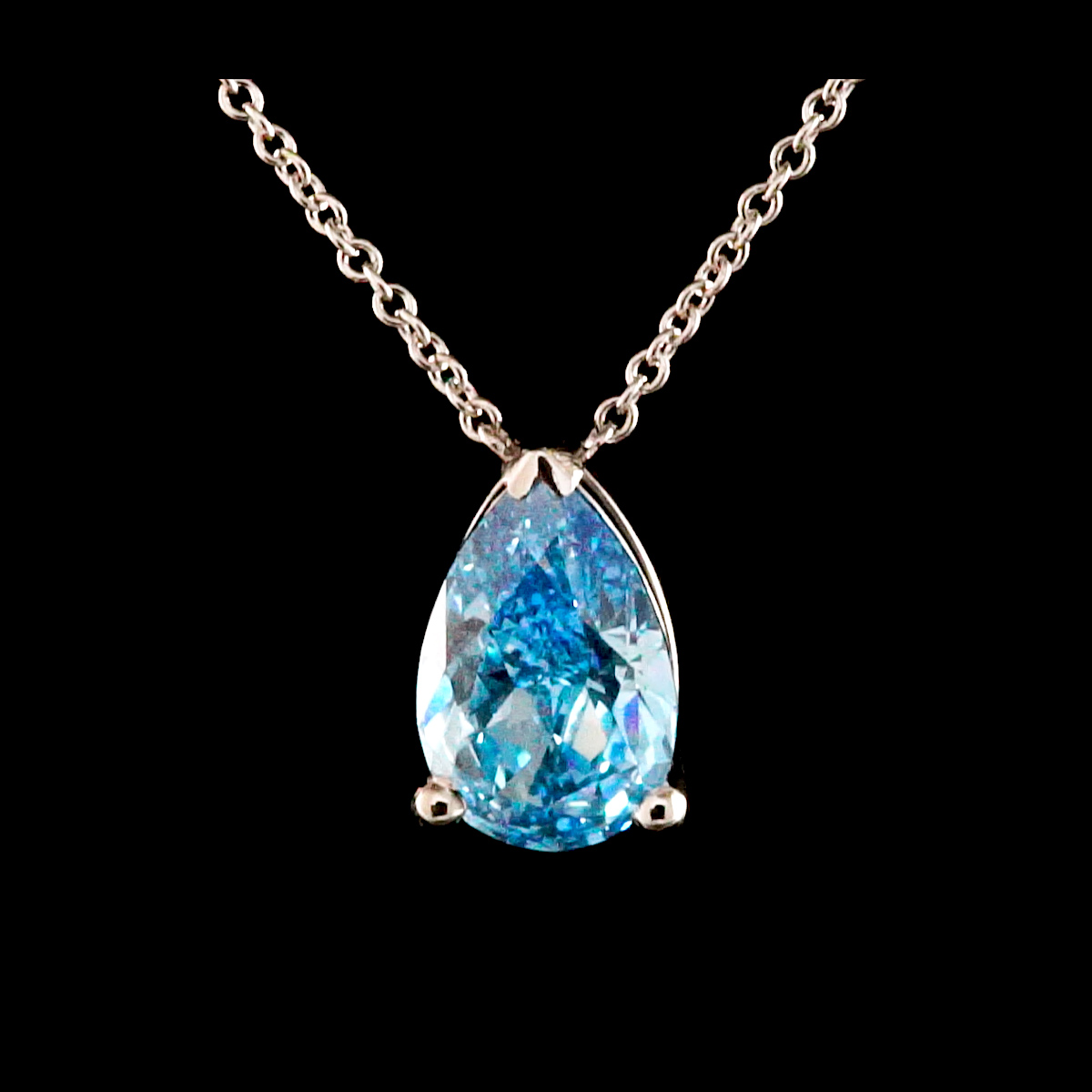 שרשרת יהלום טיפה מעבדה כחול מרחף 3.00 קראט bjdlp00326