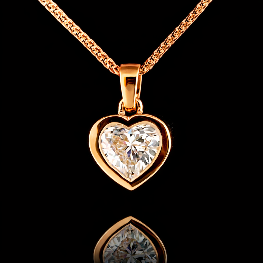 שרשרת לב יהלום מעבדה מושלמת עשויה זהב 14 קראט, צבע זהב לפי בחירתך.