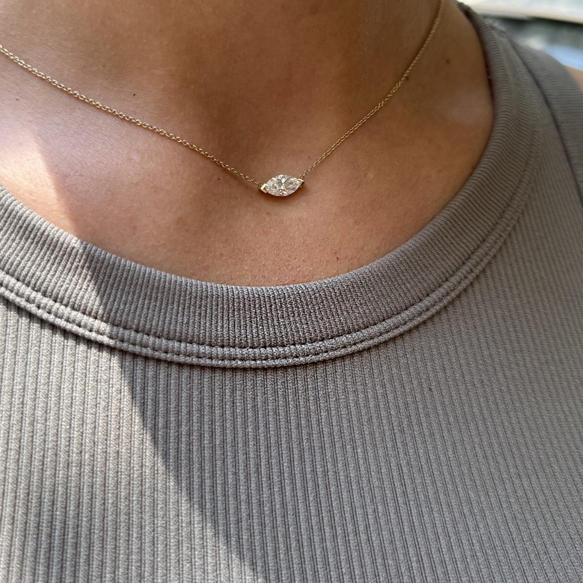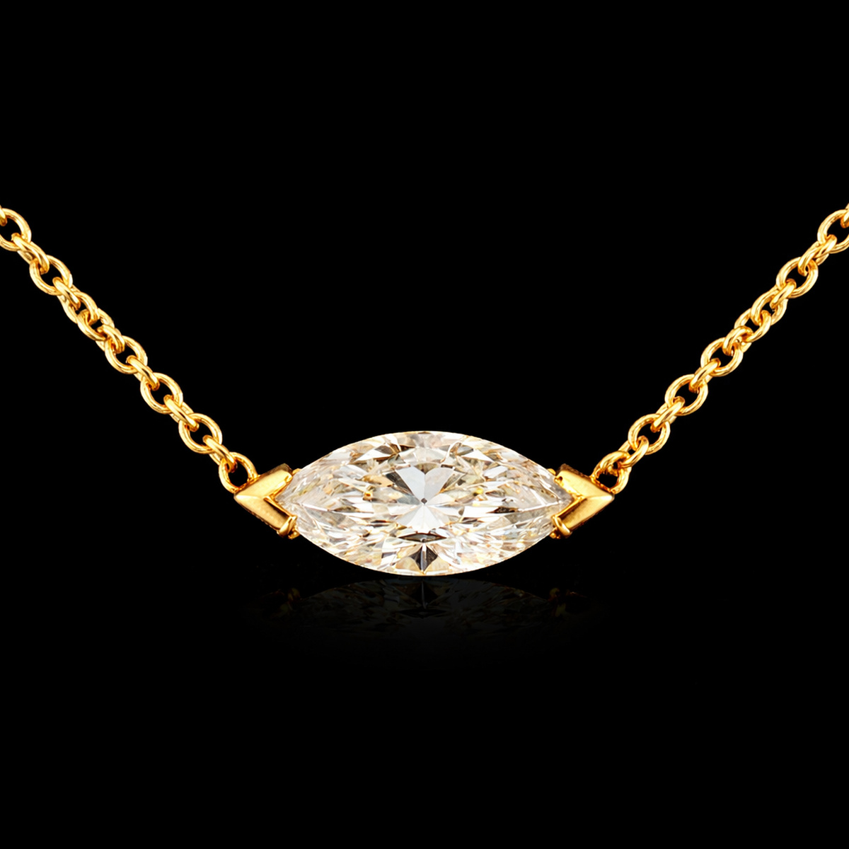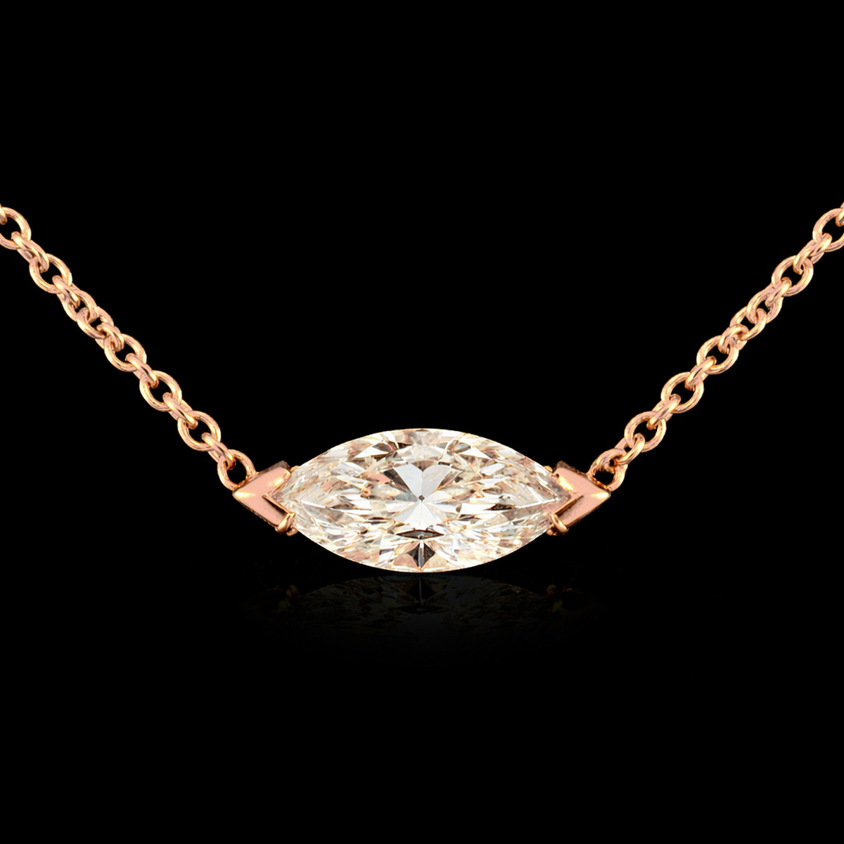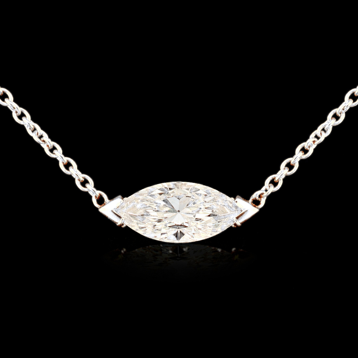 השרשרת משובצת ביהלום מעבדה ברמה הגובהה ביותר ובאיכות הטובה ביותר, בחיתוך “מרקיזה” בגודל: 1.00 קראט.