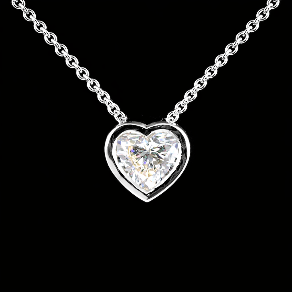 השרשרת משובצת יהלום לב מעבדה ברמה הגובהה ביותר ובאיכות הטובה ביותר, גודל היהלום בתליון 1.00 קראט.