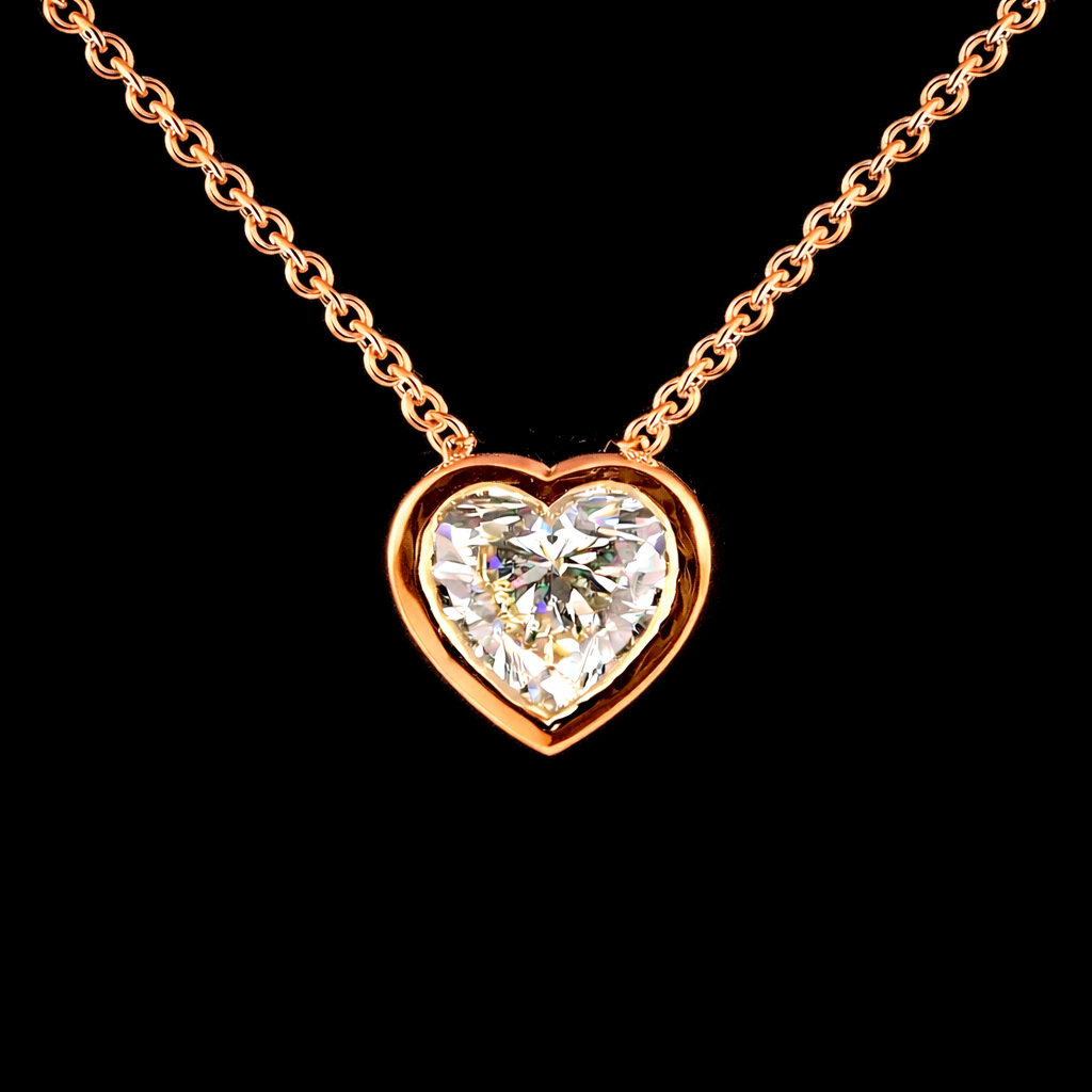 שרשרת לב יהלום מעבדה 1.00 קראט מושלמת עשויה זהב 14 קראט, צבע זהב לפי בחירתך.