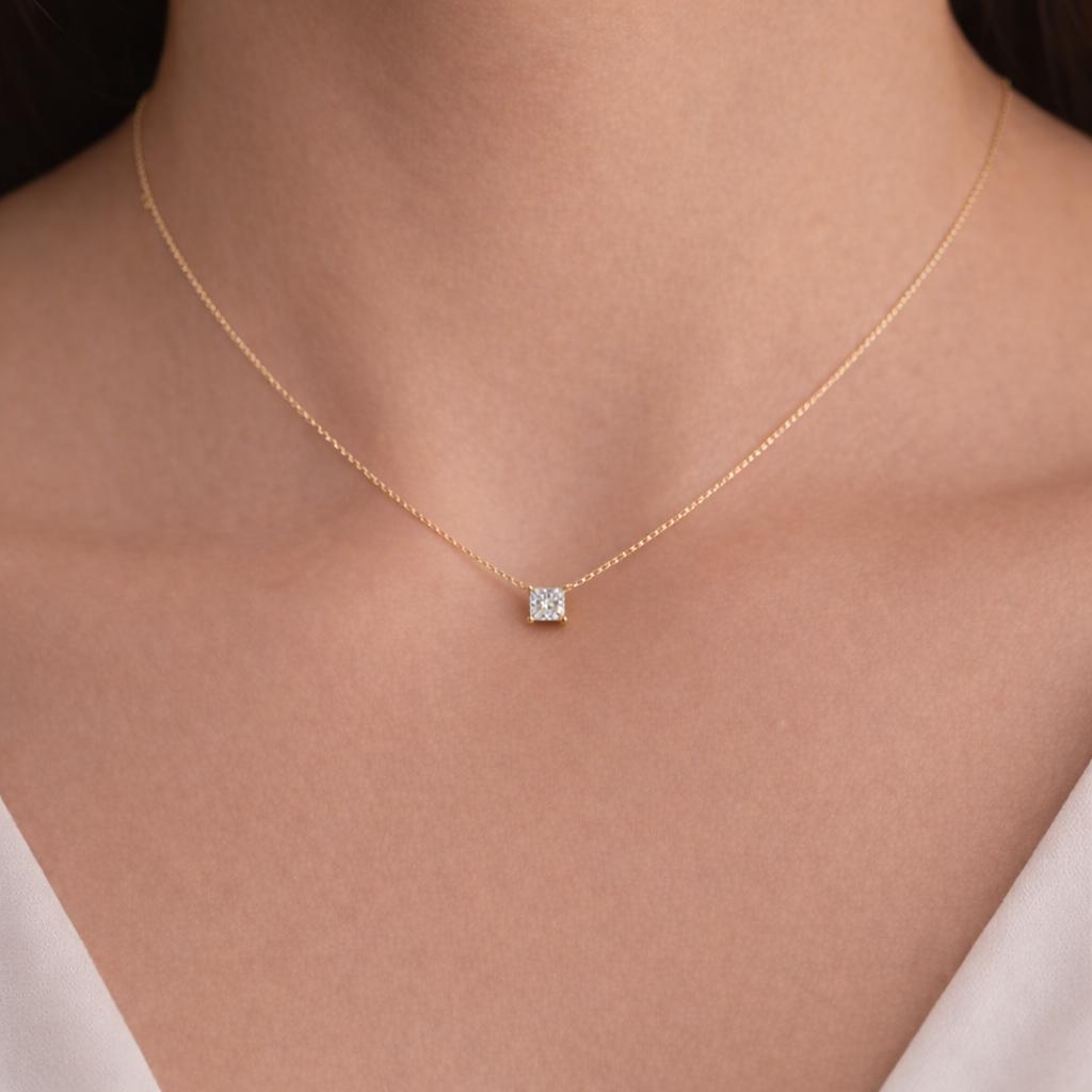 שרשרת יהלום מעבדה, גודל היהלום: 1.00 קראט בחיתוך “פרינסס”.
