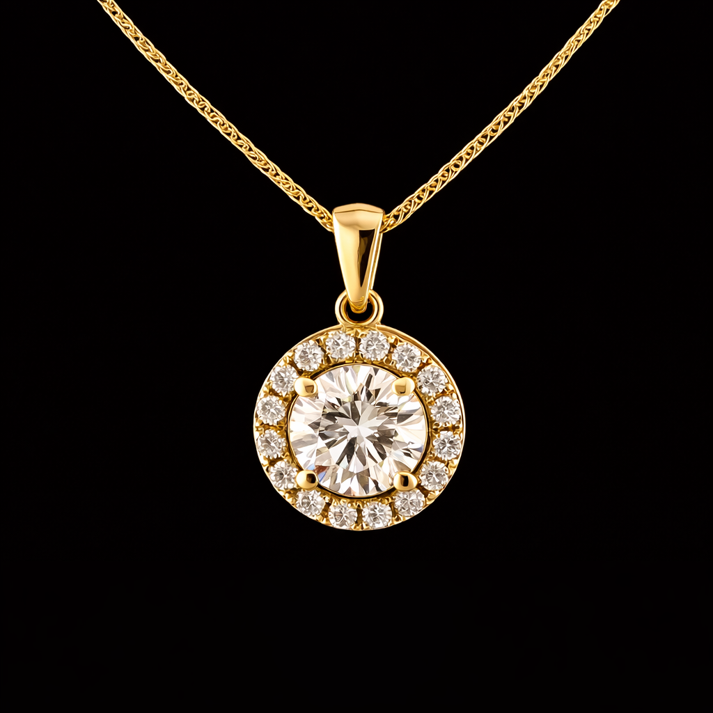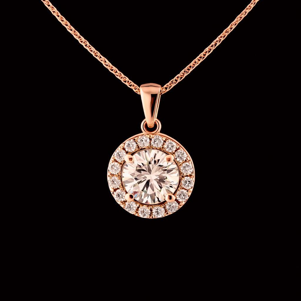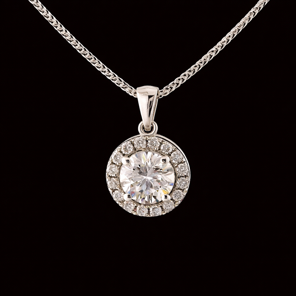 השרשרת משובצת במרכזה יהלום מעבדה ברמה הגובהה ביותר ובאיכות הטובה ביותר, גודל היהלום המרכזי בשרשרת 1.00 קראט