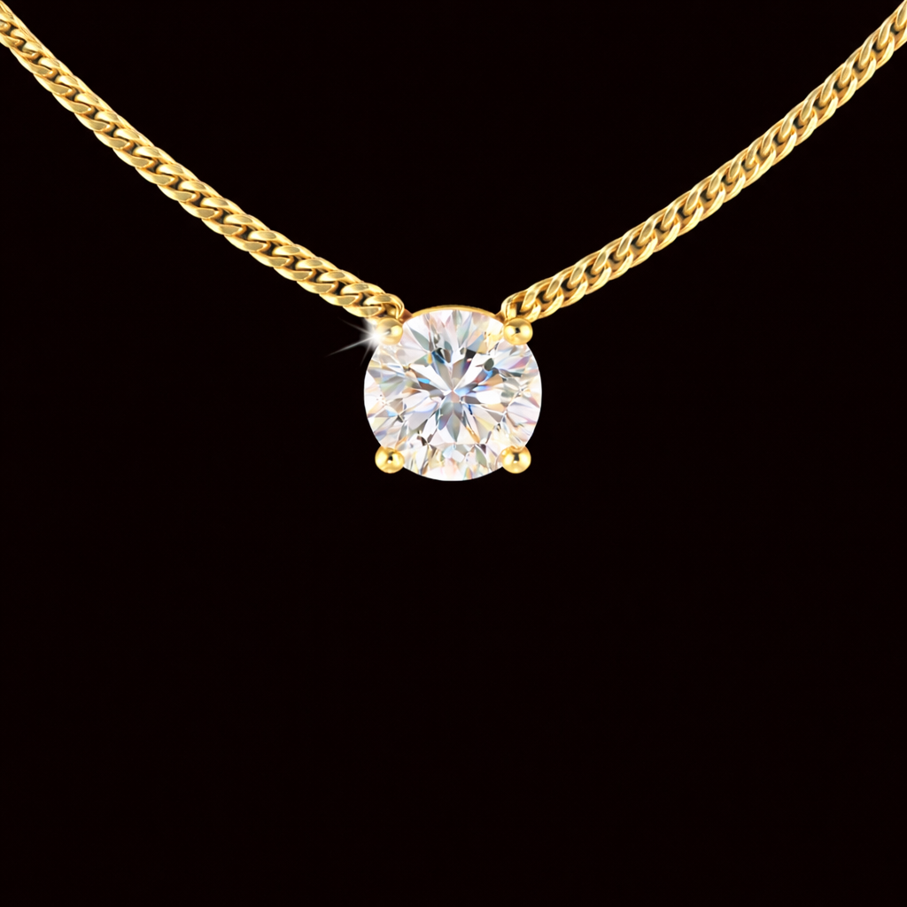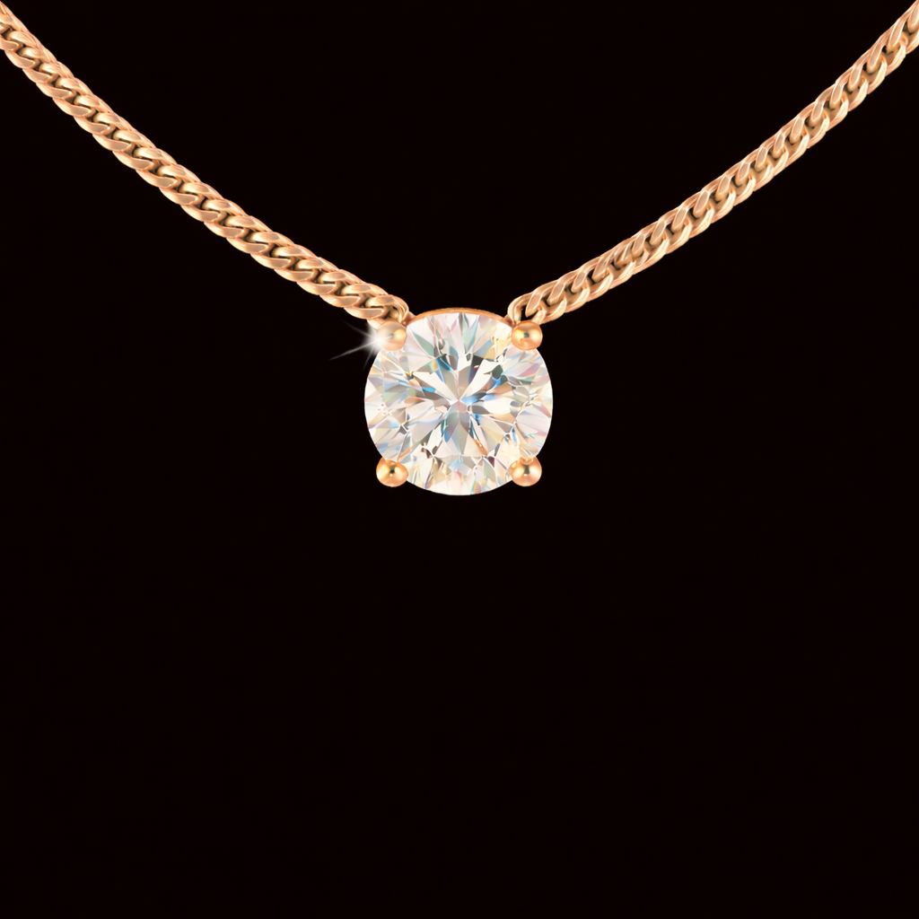 השרשרת משובצת יהלום מעבדה מרחף ברמה הגובהה ביותר ובאיכות הטובה ביותר, גודל היהלום בשרשרת 0.60 נקודות.