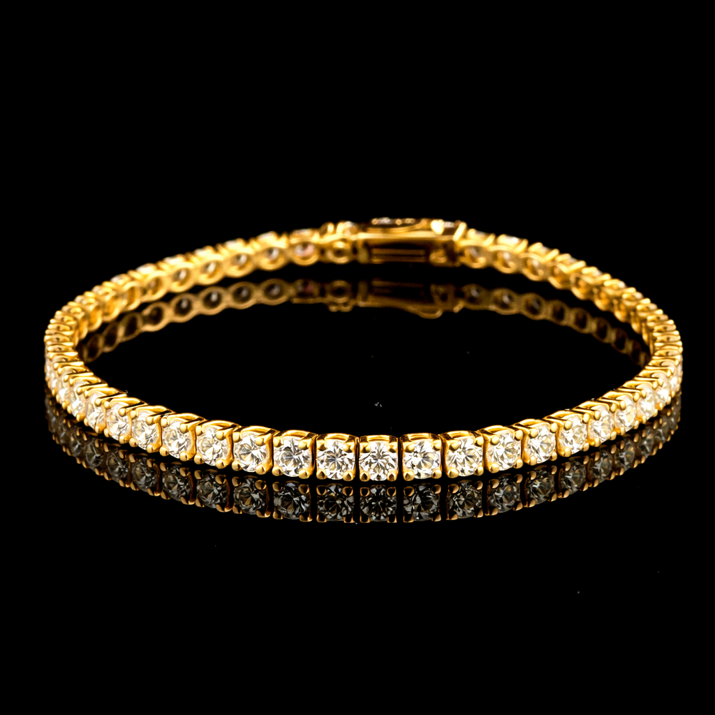 צמיד טניס יהלומי מעבדה מושלם עשוי זהב 14 קראט, צבע זהב לפי בחירתך.
