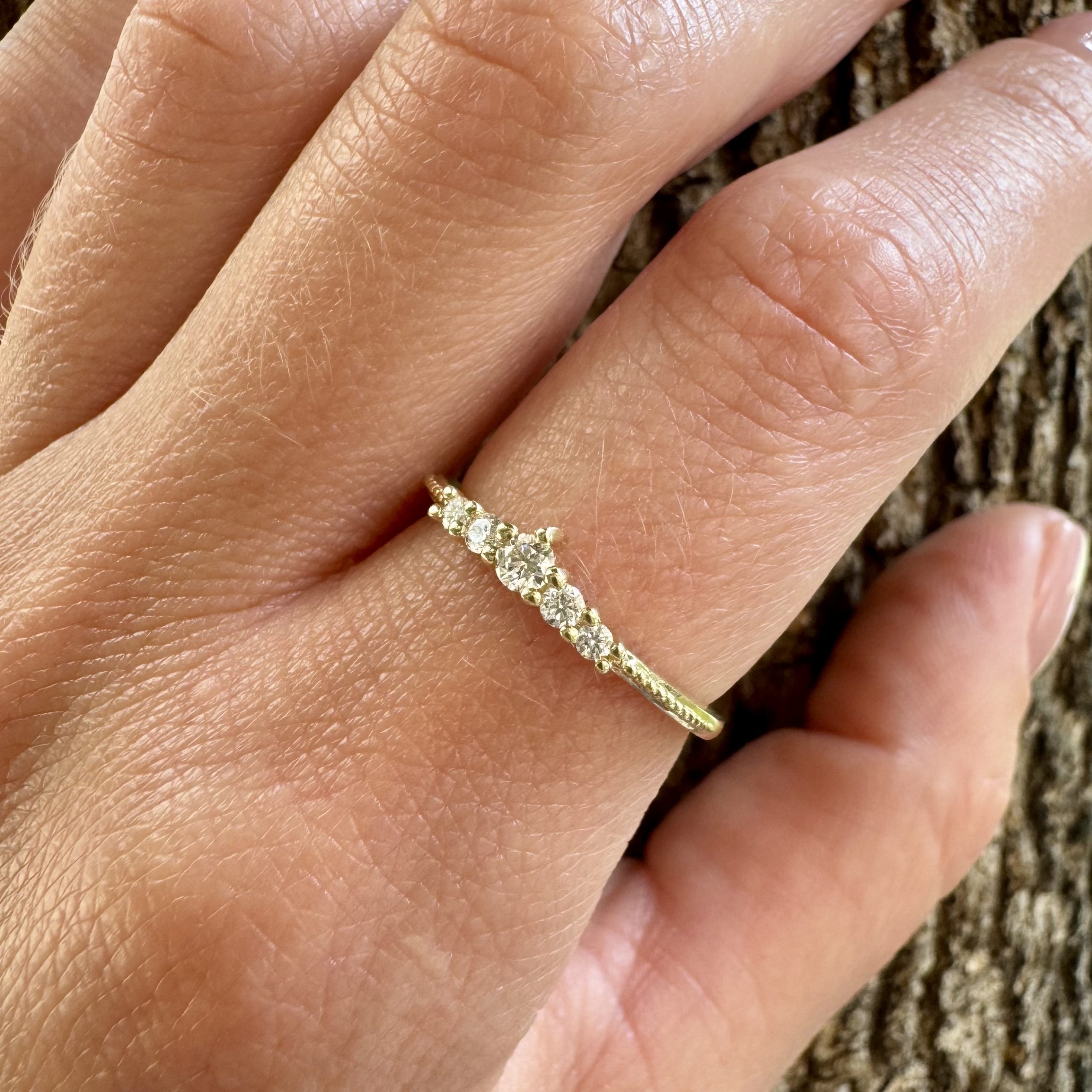 הטבעת משובצת יהלומי מעבדה ברמה הגובהה ביותר ובאיכות הטובה ביותר, משקל יהלומי מעבדה: 0.15 נקודות.