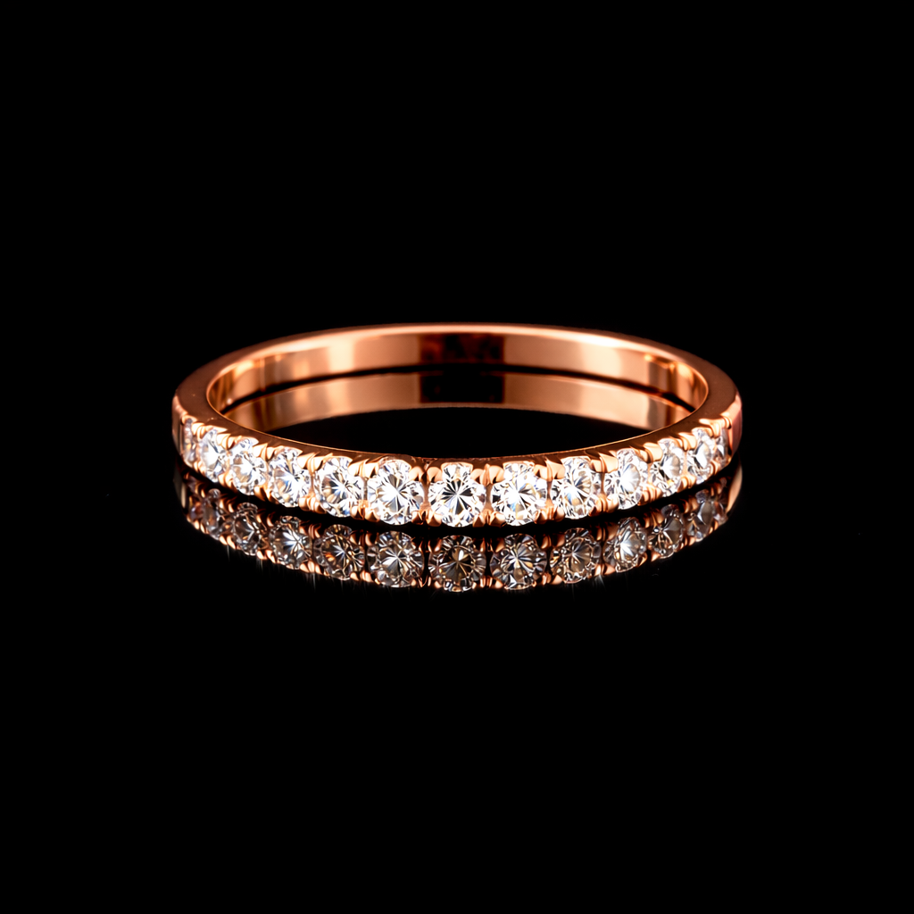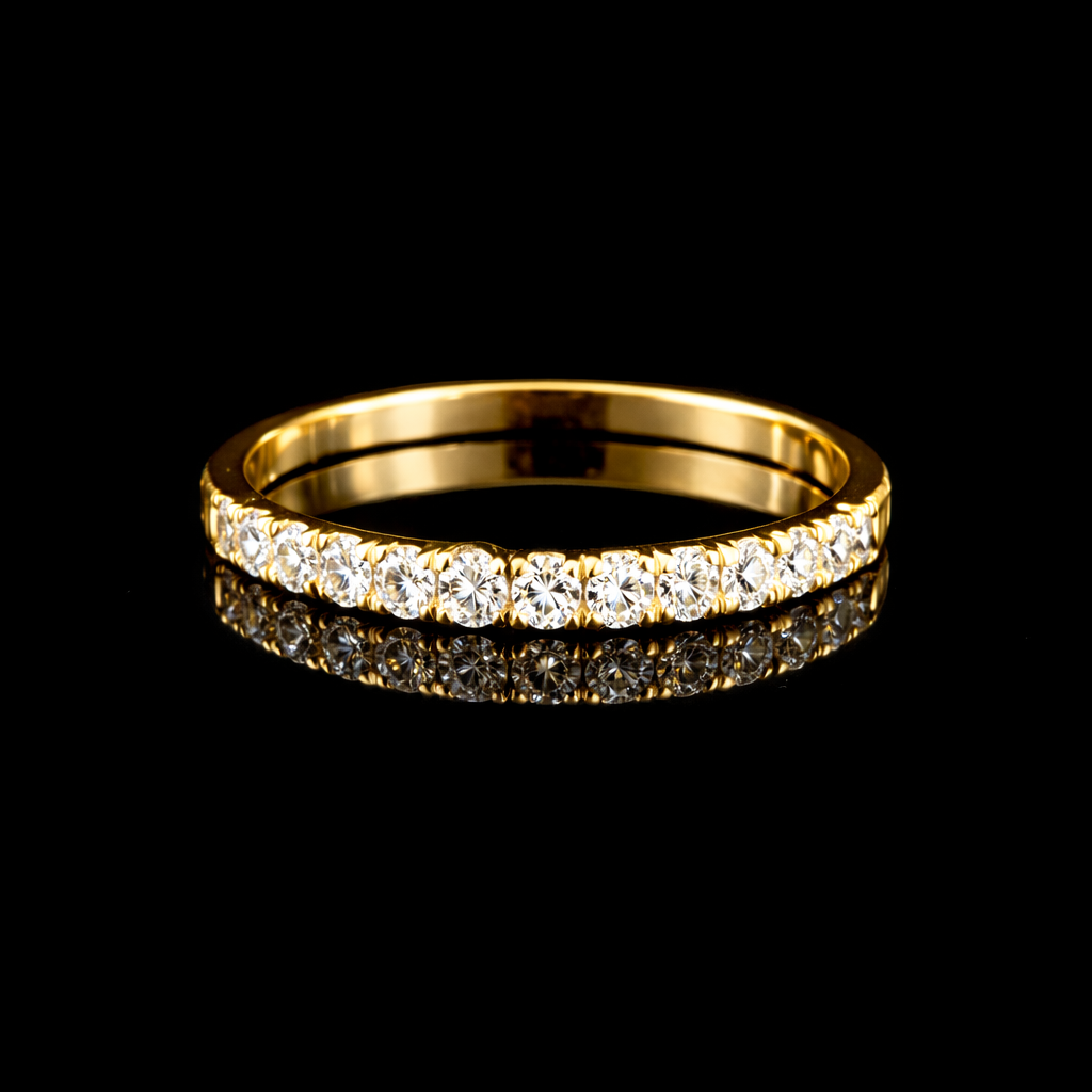 תכשיט עדין זוהר ואלגנטי, טבעת פס יהלומים, משקל יהלומים: 0.18 נקודות. משקל זהב: 1.50 גרם צבע טבעת: זהב, זהב לבן, זהב אדום