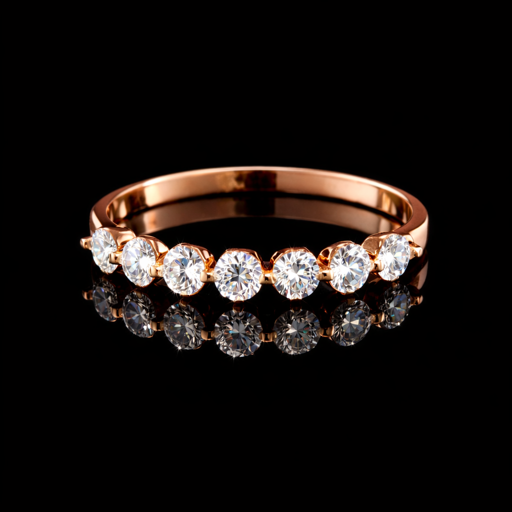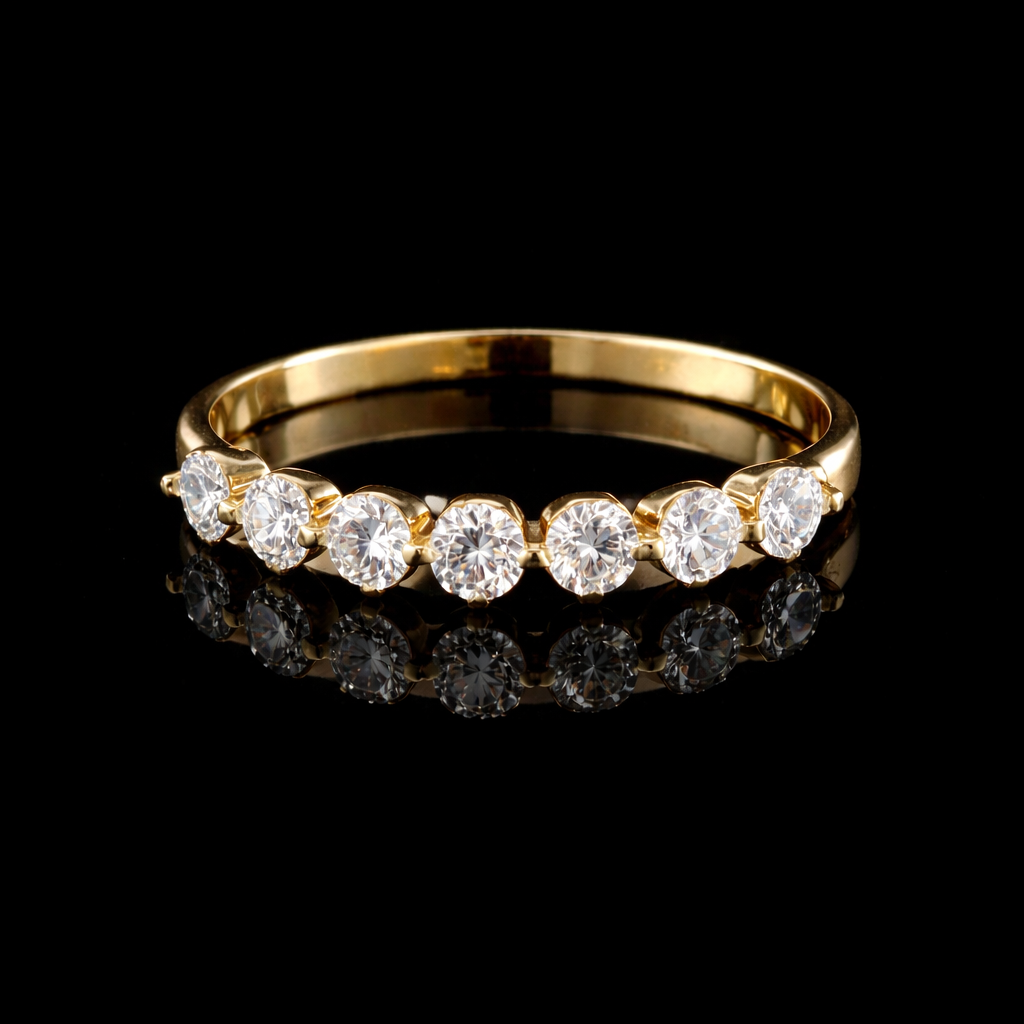 טבעת פס יהלומי מעבדה מושלמת עשויה זהב 14 קראט, צבע זהב לפי בחירתך.