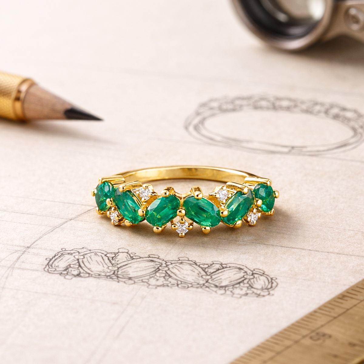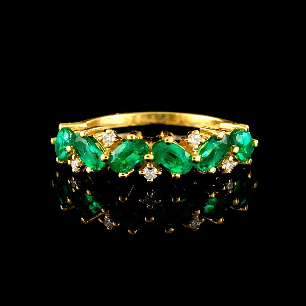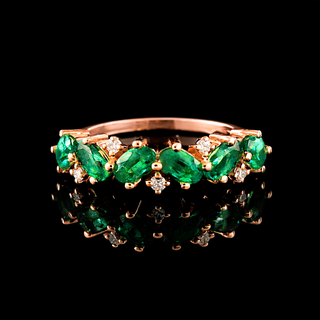 טבעת זהב מהממת משובצת אמרלדים טבעיים עדינים בחיתוך “אובל” מיוחד בשילוב יהלומים עדינים